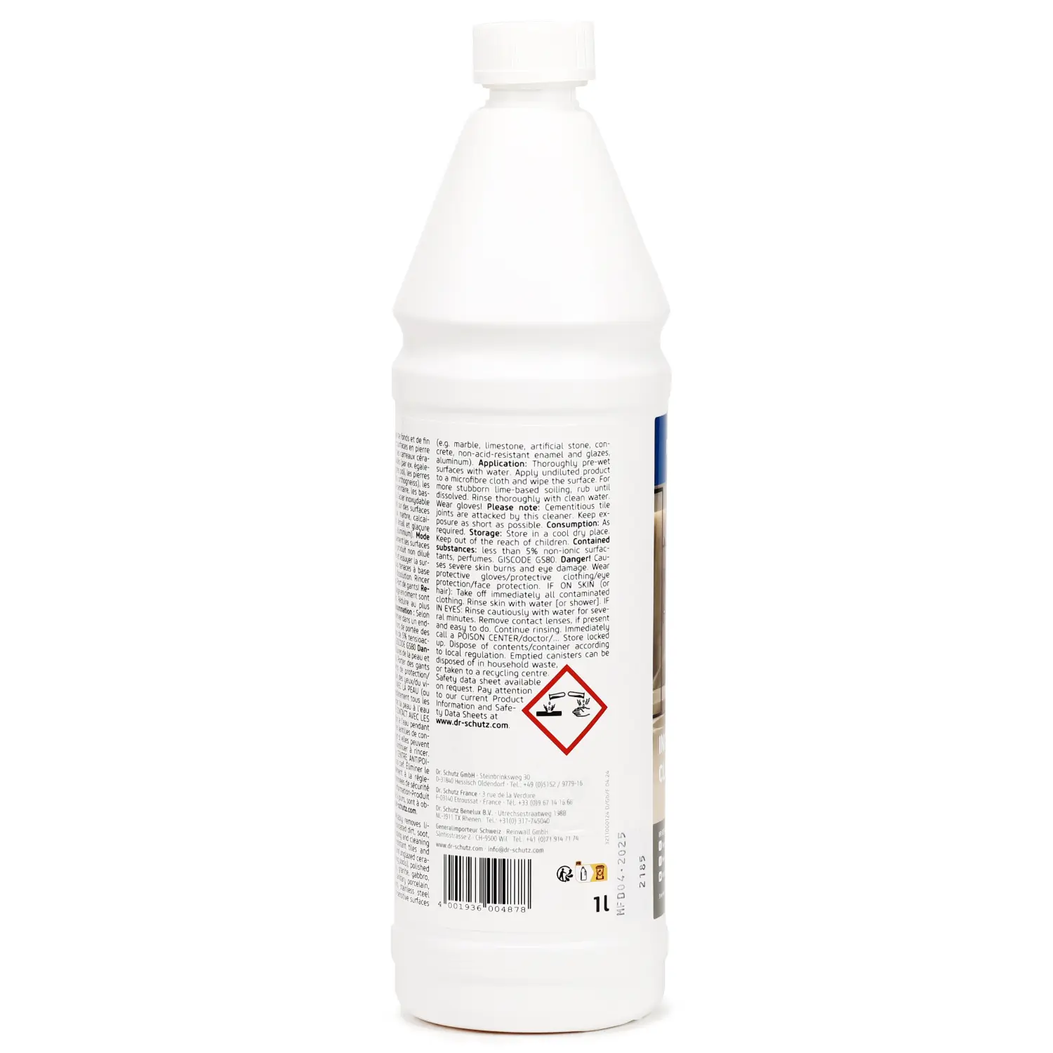 Beim Inolit Pro Clean L von Dr. Schutz handelt es sich um einen leistungsstarken, flüssigen Grund- und Sanitärreiniger zur Entfernung von Kalkablagerungen, Urinstein, Fett-, Ruß- und Rostverschmutzungen. Er eignet sich hervorragend für die Grund- und Bauschlussreinigung säurebeständiger Oberflächen – darunter Fliesen- und Keramikfußböden, Hallen- und Freischwimmbäder, Dusch- und Badewannen, Glas- und Kunststoffabtrennungen, Garten- und Fontänebecken, sanitäres Porzellan sowie Edelstahl V4A.