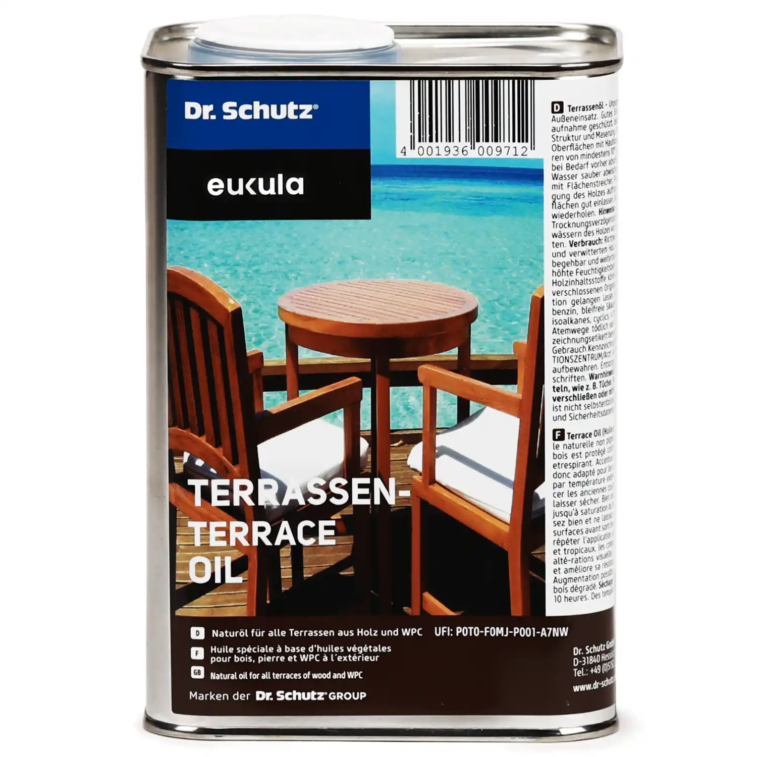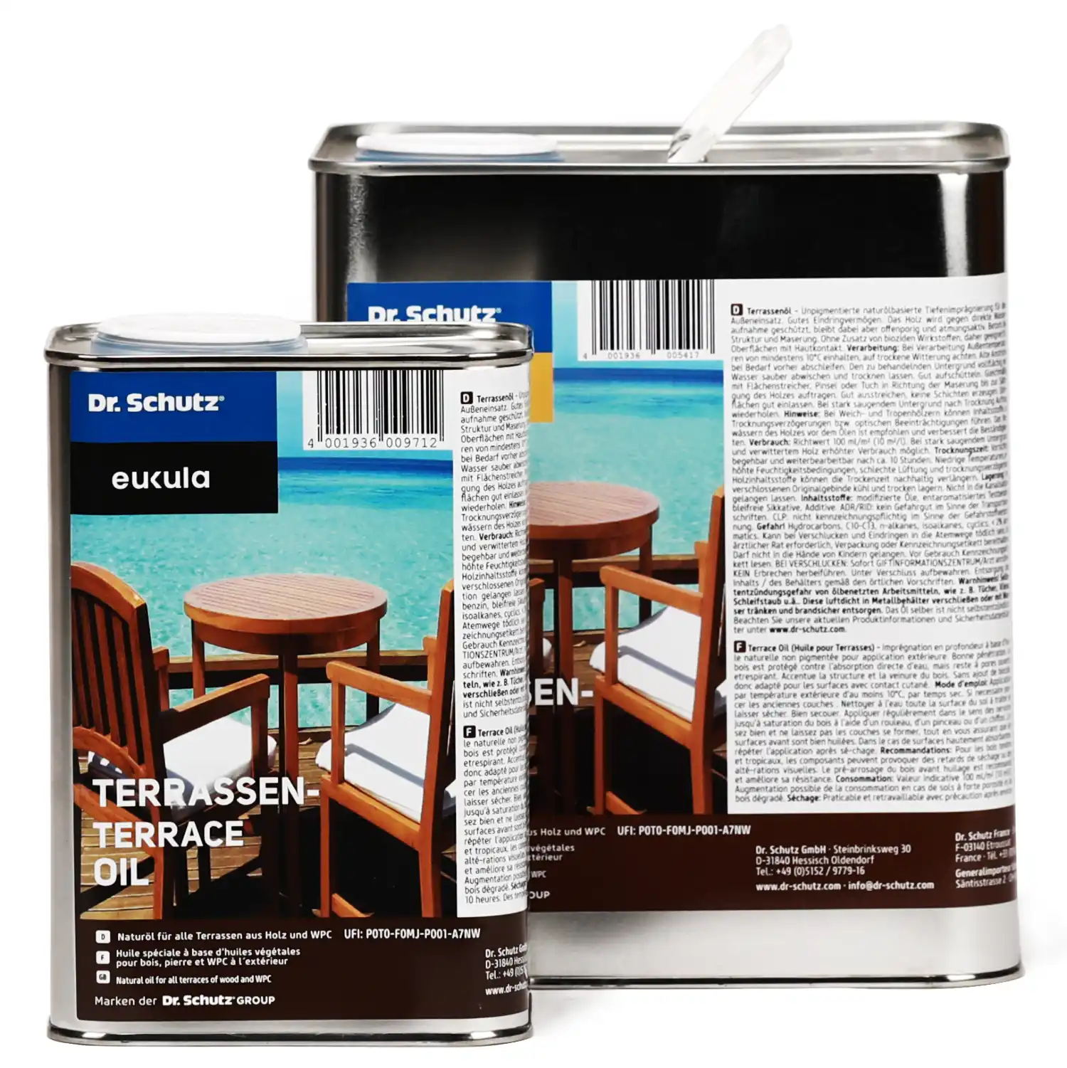Das Dr. Schutz Terrassen Öl - mit neuer Rezeptur - ist ein unpigmentiertes Spezialöl, auf Basis pflanzlicher Öle, für den Einsatz im Außenbereich. Es hat ein gutes Eindringvermögen, wobei aber die Offenporigkeit und die Atmungsaktivität des Holzes erhalten bleibt. Das Holz wird vor direkter Wasseraufnahme geschützt und die natürliche Schönheit und Struktur des Holzes wird hervorgehoben. Beim Auftrag werden Struktur und Maserung des Holzes betont - ob es sich nun um Terrassen oder Gartenmöbel handelt. Sie können damit alle Arten von Holz und WPC behandeln.