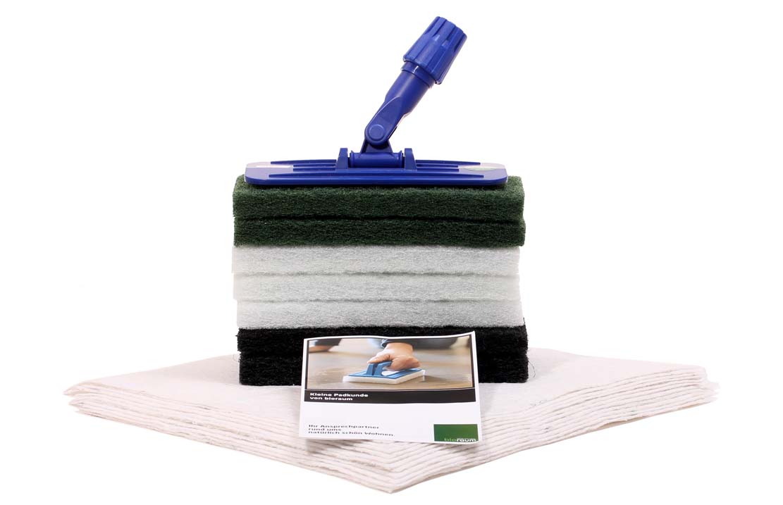 Das praktische bopro-Basisset mit Superpads deckt alle wesentlichen Anwendungsbereiche ab. Im Lieferumfang sind schwarze Pads für grobe Reinigungsarbeiten, grüne Pads zum Einmassieren von Öl und Pflegeprodukten und weiße Pads zum Polieren enthalten (genauere Informationen zu den einzelnen Padarten finden Sie in der diesem Set beiliegenden Padkunde).